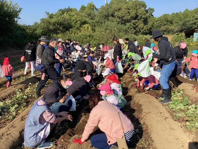 幼稚園のお芋畑で親子お芋掘りを行いました。