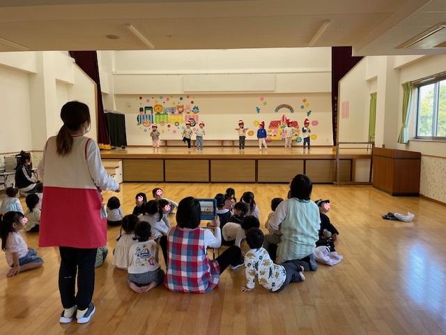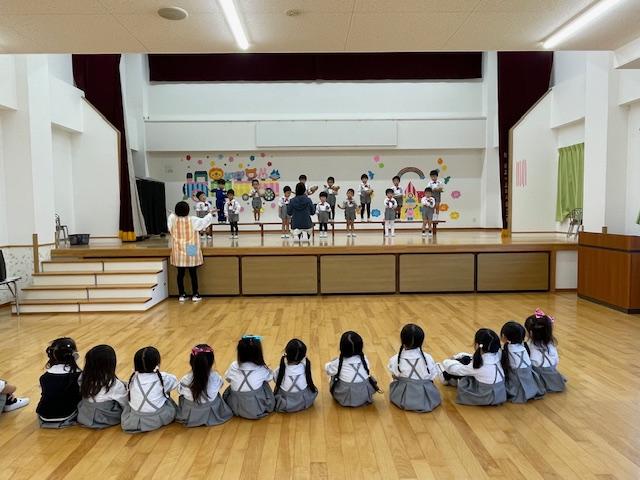 おゆうぎ🍓の練習。お友だちにもお客さんになってもらいます。