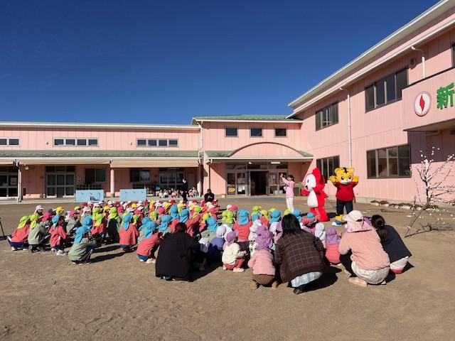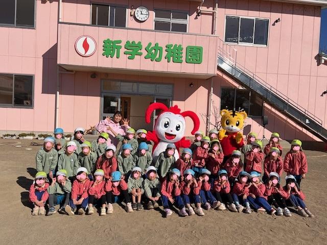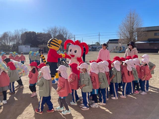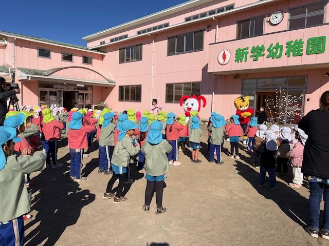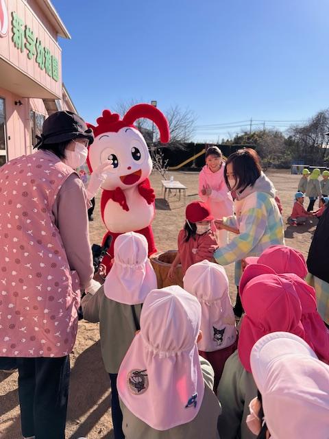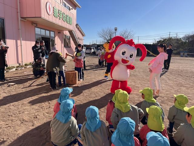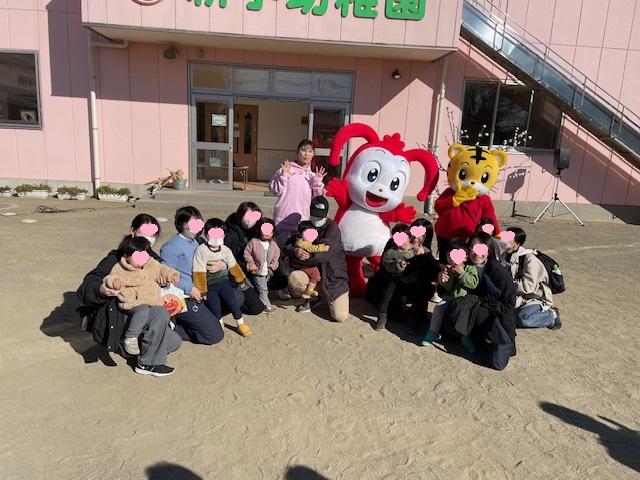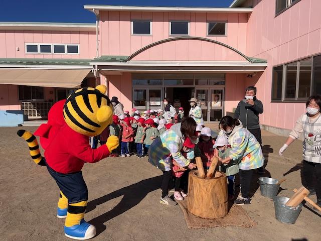 幼稚園のおもちつきにコラショとしまじろうが応援しに来てくれました。