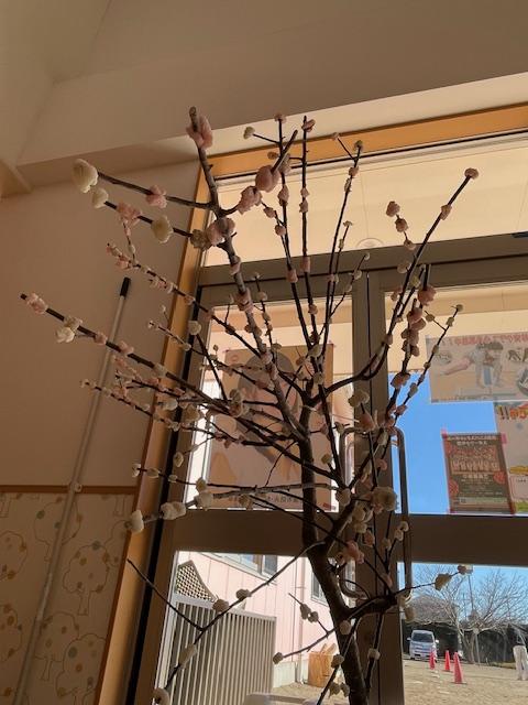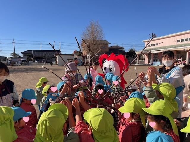 ならせもち、紅白のお餅を木の枝に付けました。うまくつけられない様子も見られましたが、一生懸命行いました。