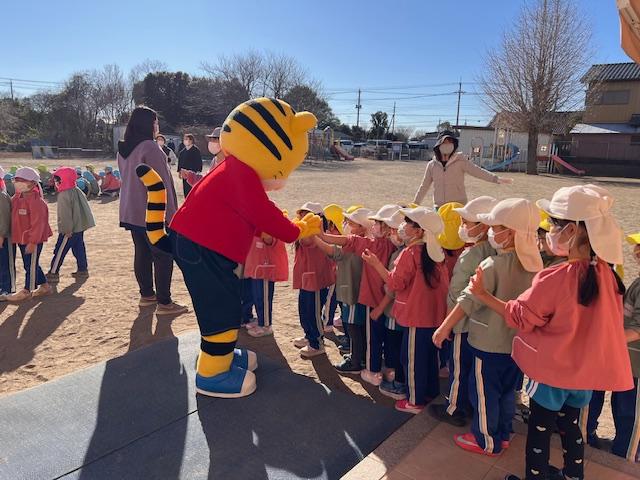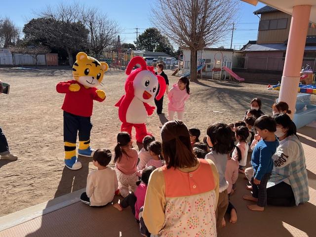 2歳児クラスのお友だちも、コラショとしまじろうと触れ合いました。